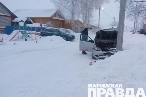 В Медведевском районе Марий Эл 23 декабря неосторожность женщины привела к ДПТ, в котором пострадала она сама, повреждены иномарка и опора линии электропередачи.