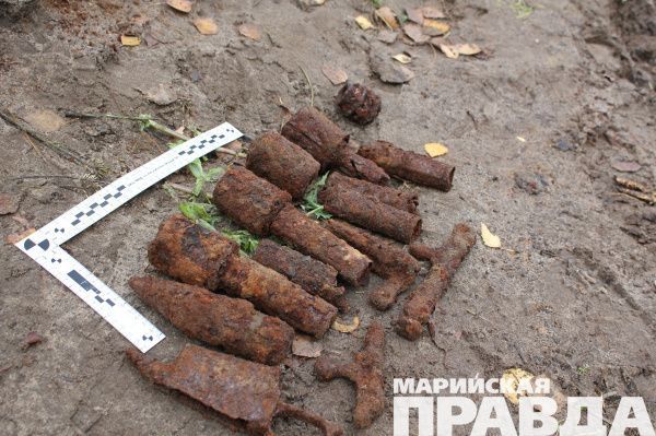 Прибывшие на место специалисты инженерно-технической группы ОМОН регионального отдела Росгвардии убедились, что кроме четырех ручных гранат, в земле были спрятаны три ручки к ним, тротиловая шашка для гранат и пустой 45-миллиметровый снаряд. Тротил омоновцы передали сотрудникам МВД, а оставшуюся часть клада изъяли, чтобы уничтожить, - сообщает пресс-служба отдела Росгвардии по Марий Эл.
