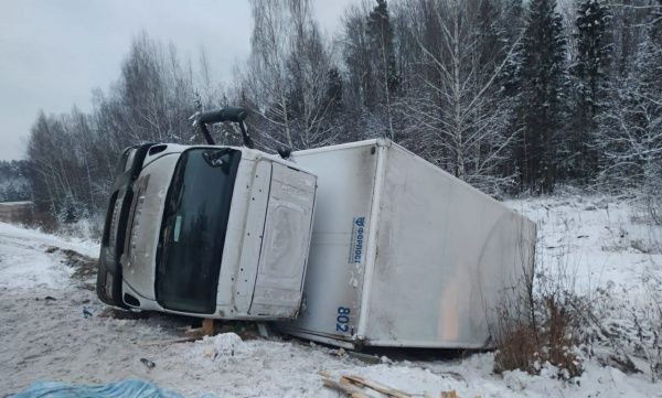 К опрокидыванию привела ошибка при обгоне 36-летнего водителя автомашины Iveco. В сложных погодных и дорожных условиях он не справился с управлением транспортным средством, в результате чего грузовик опрокинулся. Непристегнутый водитель выпал из кабины грузовика. От полученных травм он скончался на месте происшествия. Его 37-летний пассажир был пристегнут ремнем безопасности, он не пострадал.