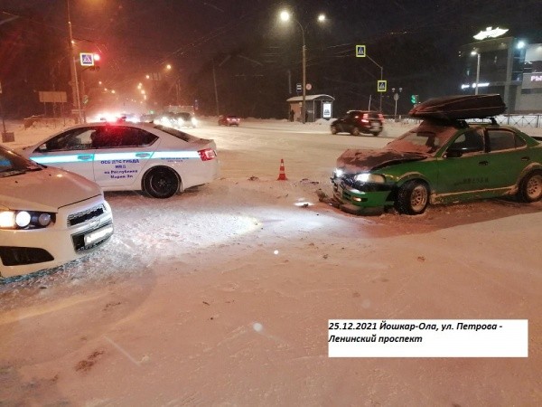 Примерно в 15.00 ДТП произошло в Йошкар-Оле на регулируемом светофорами перекрестке улицы Петрова и Ленинского проспекта. Столкнулись две иномарки, предварительно, первая не уступила дорогу. 31-летний мужчина за рулем Chevrolet Aveo, поворачивая налево по зеленому сигналу, не «подождал», пока проедет Toyota. Ее водитель ехал со встречного направления прямо.