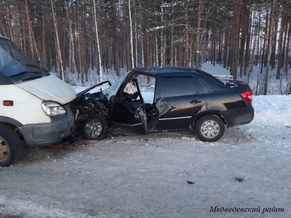 Авария случилась на 67 км автодороги «Вятка». По данным ГИБДД МВД по Марий Эл, 58-летний водитель ГАЗ-3302, идя на обгон не убедился в безопасности маневра, в результате чего столкнулся с идущей по встречке Lada Granta под управлением 47-летнего водителя.