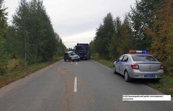 Грузовая машина и легковушка столкнулись 25 сентября в Горномарийском районе Марий Эл.