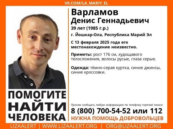 Местонахождение 39-летнего Дениса Геннадьевича Варламова неизвестно с 13 февраля.