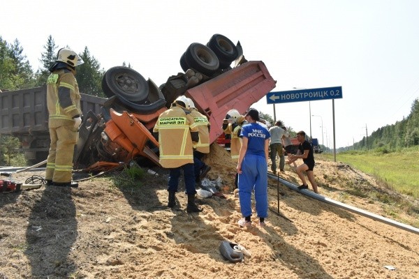 Как уже сообщала "Марийская правда", ДТП случилось 3 августа. Очевидцы позвонили в МАСС и рассказали, что при повороте на Новотроицк на Кокшайском тракте столкнулись КАМАЗ и МАЗ.