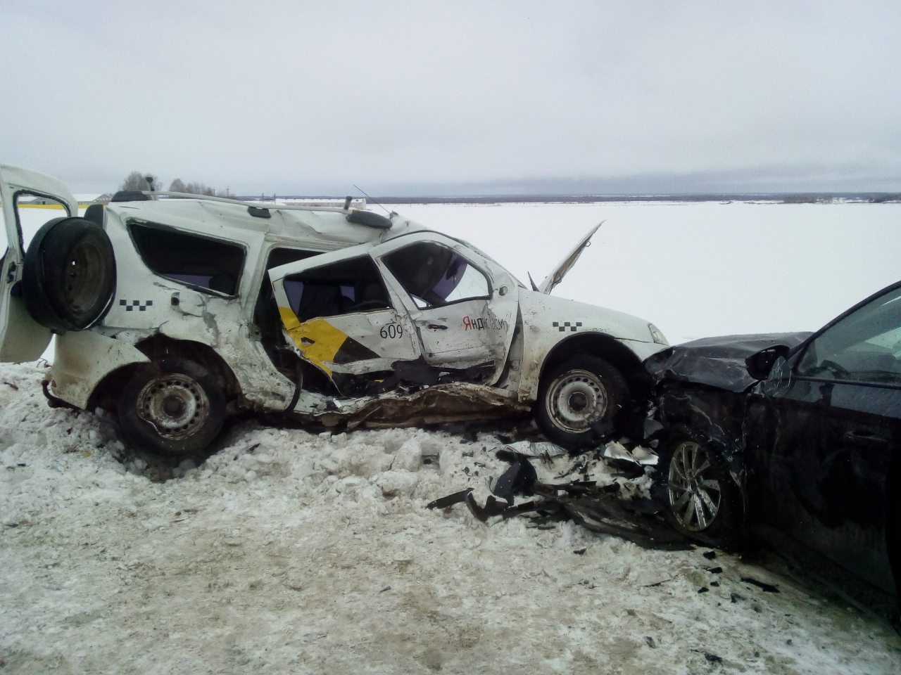 Столкновение произошло в пригороде Йошкар-Олы 16 февраля на 9-м километре дороги Йошкар-Ола - Уржум. По предварительной версии сотрудников ГАИ, мужчина за рулем такси не рассчитал скорость на скользкой зимней дороге во время небольшой метели и не смог совладать с управлением автомобилем. Машину вынесло на встречку, по которой ехала иномарка «Шкода». Произошло столкновение.