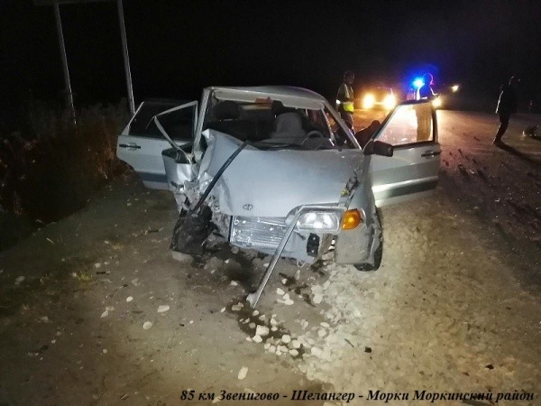 Авария произошла около 22:30 на 85-м км автодороги "Звенигово-Шелангер-Морки". По предварительным данным, 34-летний водитель, управляя автомобилем ВАЗ-2115 в состоянии алкогольного опьянения, выехал на "встречку" и столкнулся с машиной Ravon Nexia. В результате ДТП в больницу с травмами был доставлен 33-летний пассажир ВАЗ-2115. Спасти его врачи не смогли.