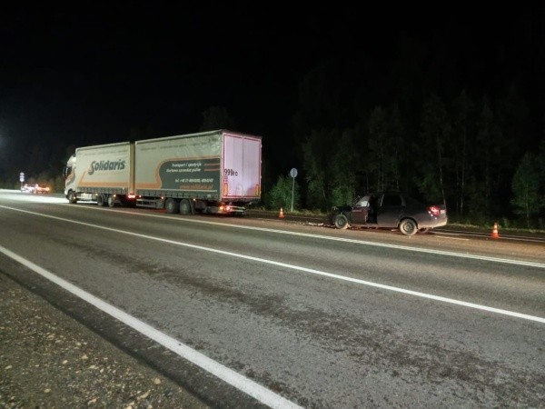 Вечером на дороге фура Volvo столкнулась с легковым автомобилем Lada Granta. В результате аварии водитель отечественной машины получил травмы и был доставлен в больницу.