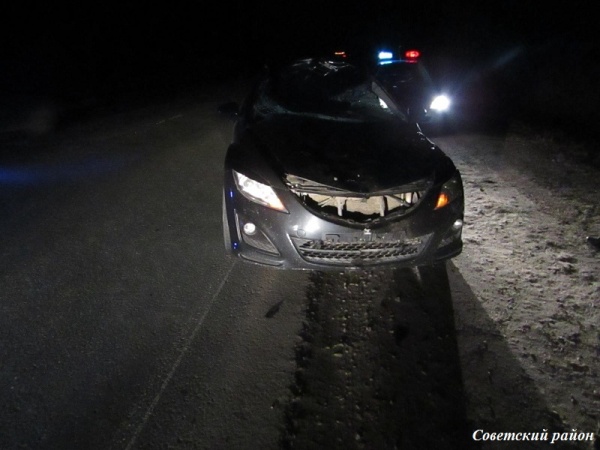 ДТП произошло около 8 часов вечера. По данным ГАИ, 23-летний водитель автомобиля Mazda не успел остановить транспортное средство, потому что животное внезапно выбежало на проезжую часть перед самой машиной.
