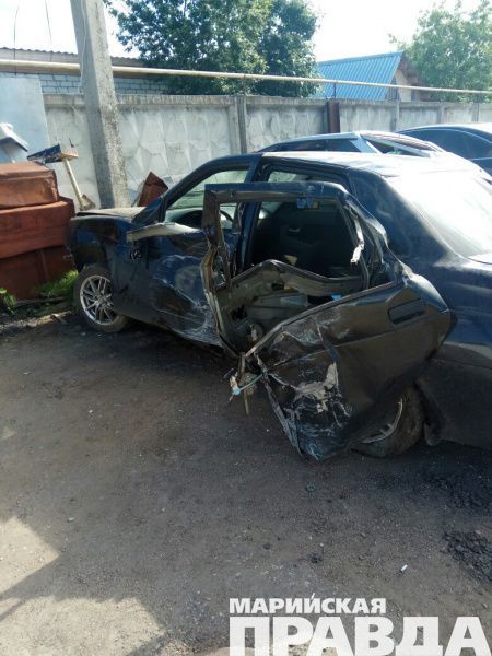 В Сернурском районе Марий Эл водитель автомобиля "Лада Приора", уходя от погони, врезался в столб.