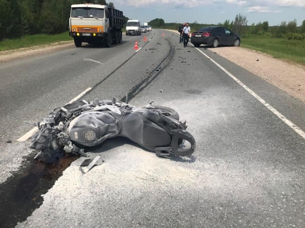 В Волжском районе Марий Эл женщина-водитель на иномарке выехала на встречную полосу и столкнулась с мотоциклистом.