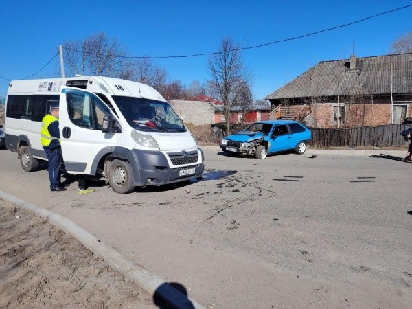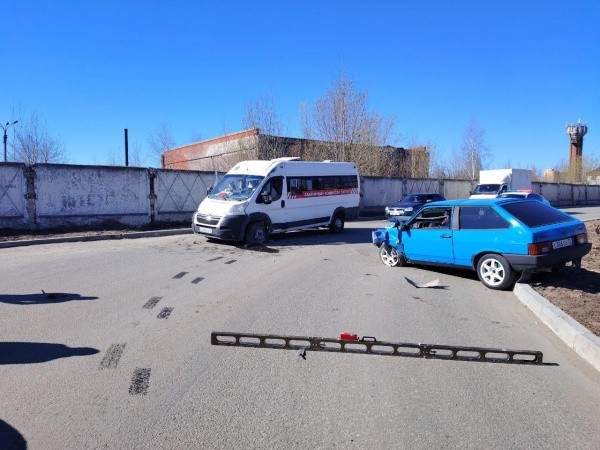 Около 13:40 на улице Медведево столкнулись автомобиль ВАЗ-2108 и пассажирский маршрутный автобус Citroen.