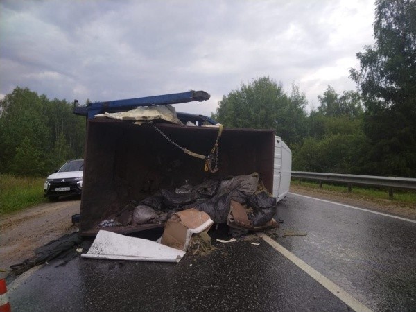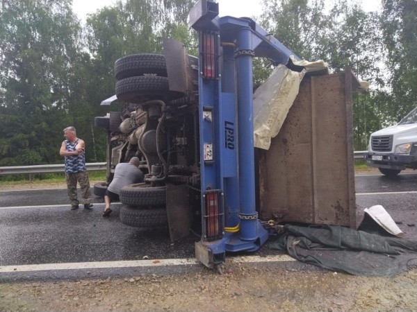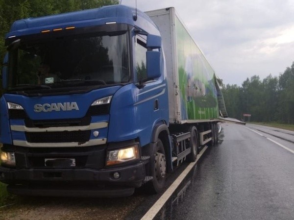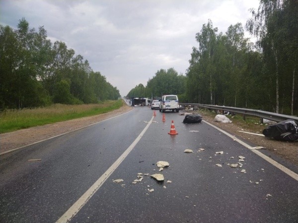 Автоинспекторы устанавливают обстоятельства аварии. По предварительным данным, при столкновении двух грузовых автомобилей пострадал человек.