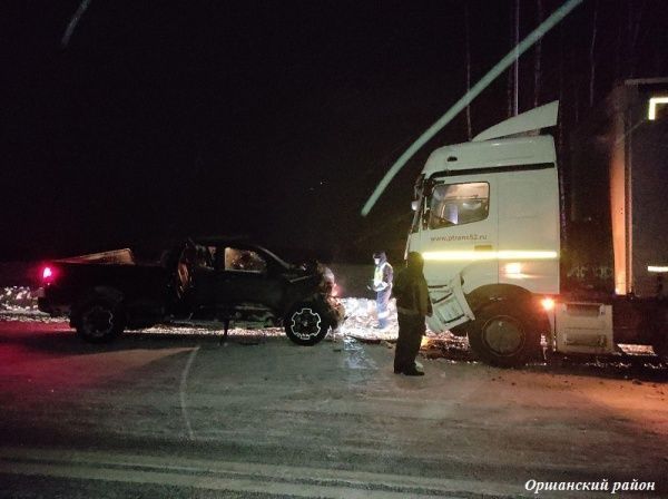 На 124 километре трассы "Вятка" столкнулись Toyota и КамАЗ.  Авария случилась около половины девятого вечера.