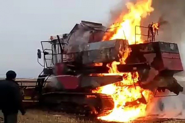 В районе Марий Эл загорелся комбайн