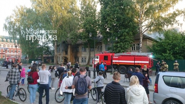 Пожар в самом центре Йошкар-Олы - горит двухэтажный дом на улице Гоголя. Как сообщают очевидцы, пламя охватило помещения на обоих этажах в одном из подъездов. В данный момент ситуация взята под контроль, на место прибыли 7 машин спецтехники, работают 27 пожарных.