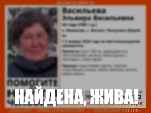 Если вы располагаете любой информацией о ее местонахождении или видели Эльвиру Васильевну, сообщите по телефонам горячей линии: 8 (800) 700-54-52 или 112.