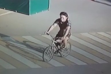 В момент совершения преступления был одет в футболку синего цвета, шорты черного цвета, сандалии, передвигался на велосипеде белого цвета.