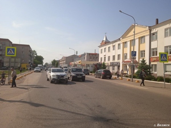 23 мая в Волжске произошло ДТП: пожилой водитель Renault наехал на юношу, который не спешился, чтобы пересечь проезжую часть.