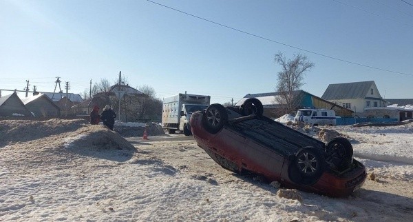 Во избежание столкновения автоледи применила экстренное торможение и наехала на снежный вал, в результате чего ее автомобиль опрокинулся. Девушка с травмами была госпитализирована.