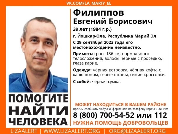 В Йошкар-Оле 29 сентября пропал Евгений Филиппов