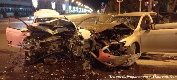 Авария произошла сразу после полуночи на перекрестке Ленинского проспекта и улицы Первомайской в Йошкар-Оле.