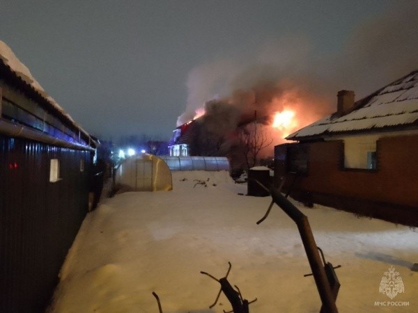 В этот момент внутри дома находились супруги и их совершеннолетний сын. Молодой человек первым заметил дым, после чего вся семья эвакуировалась. К моменту прибытия пожарных огонь раскинулся на площади около 200 квадратных метров.