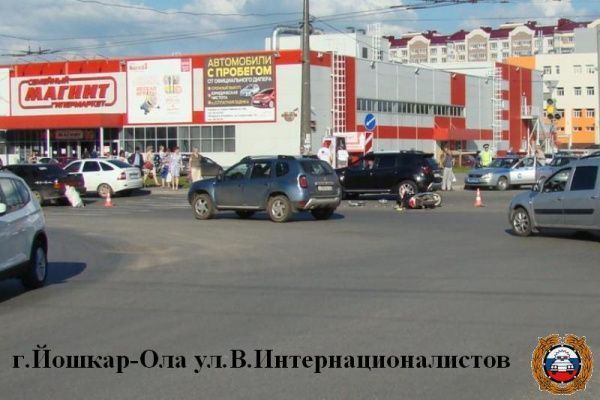 В Йошкар-Оле вечером 27 июля девушка на пятнадцатой модели «жигулей», по предварительной информации полиции, устроила ДТП на улице Воинов Интернационалистов. 29-летняя автоледи на «пятнадцатой», как позволяют судить имеющиеся данные, поворачивая налево по зеленому сигналу светофора, не пропустила ехавший со встречного направления прямо скутер. 22-летний парень, находившийся за рулем двухколесного транспортного средства, получил травмы. Его доставили в больницу, где медики назначили водителю лечение, которое он сможет пройти амбулаторно. По заключению специалистов ГАИ, если бы не застегнутый по всем правилам мотошлем, последствия столкновения могли бы быть плачевными, сообщает группа по пропаганде безопасности дорожного движения УГИБДД МВД по Марий Эл.