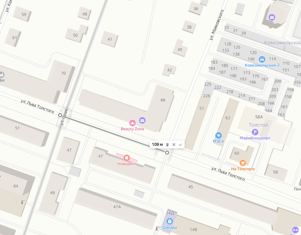 Со вчерашнего дня действует запрет движения транспорта на улице Льва Толстого. Об этом сообщили в администрации Йошкар-Олы.