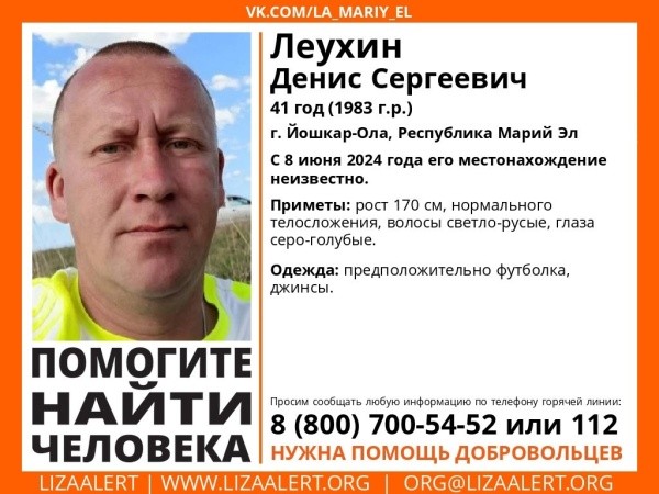 Местонахождение 41-летнего Дениса Сергеевича Леухина неизвестно с 8 июня.