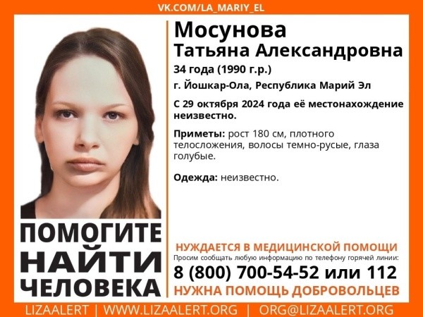 Поисковый отряд «Лиза Алерт» Марий Эл просит помощи в поисках 34-летней йошкаролинки.