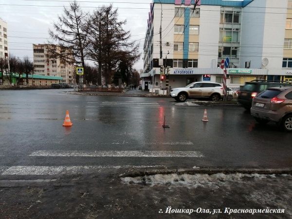 Пешеход переходила дорогу на красный свет и была сбита женщиной-водителем на перекрестке улиц Красноармейской и Комсомольской.