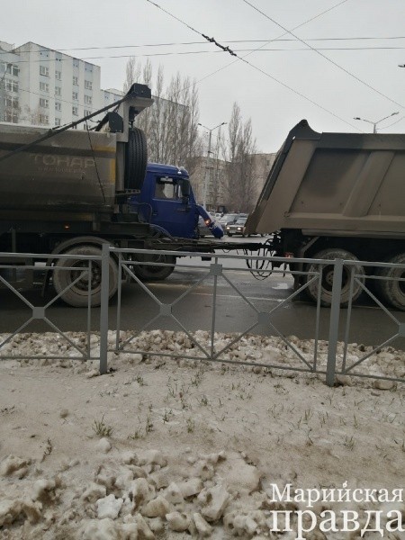 В Йошкар-Оле из-за аварии с двумя грузовиками в районе Ширяйково образовалась пробка