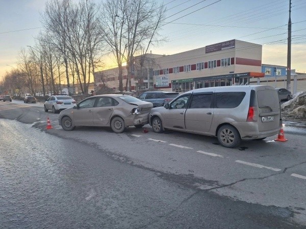 Авария случилась во вторник около 16:45 на улице Машиностроителей. Предварительно, 48-летний водитель автомобиля «Лада Ларгус» не выбрал безопасную дистанцию и столкнулся с машиной Volkswagen Polo, которая ехала впереди.