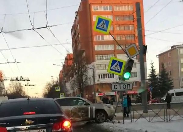 В Йошкар-Оле попавшая в ДТП иномарка погнула светофор