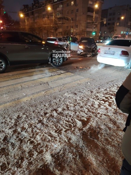 На перекрестке столкнулись две машины, один из участников ДТП – иномарка Kia Rio. Как сообщили очевидцы «Марийской правде», на место происшествия приехала скорая помощь, возможно, есть пострадавшие.
