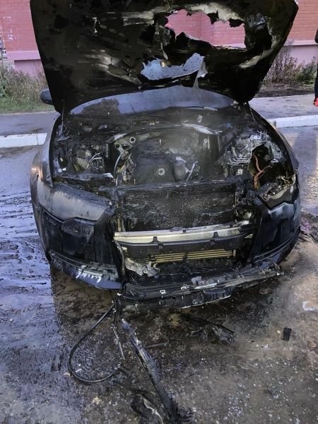 Около 15:40 водитель Audi A-6 припарковался у одного из домов по улице Петрова и вышел из автомобиля. А уже через несколько минут очевидцы заметили дым, исходящий из-под капота.