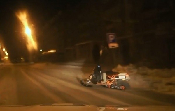 Ночью инспекторы экипажа ДПС заметили на улице Водопроводной снегоход, который ехал по проезжей части. На требование правоохранителей остановиться, водитель только прибавил скорость. В результате сотрудникам ГИБДД пришлось начать преследование транспортного средства.