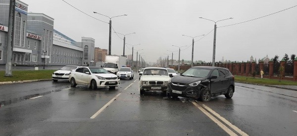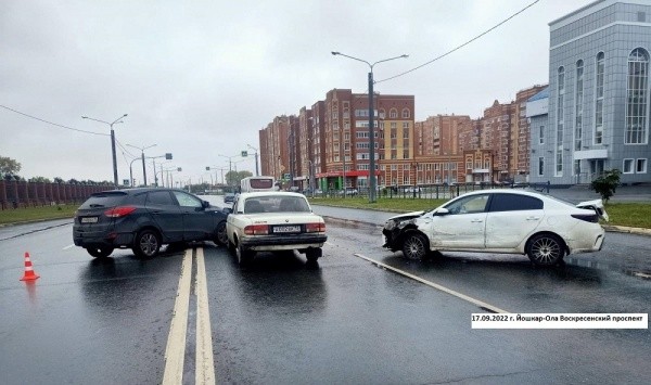 Приблизительно в 12 часов 30 минут у дома №5 на Воскресенском проспекте в Йошкар-Оле столкнулись 3 автомобиля.
