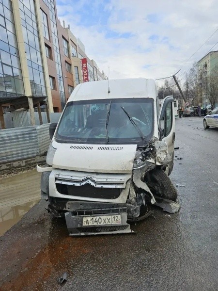 Сегодня, 7 апреля, в Йошкар-Оле около 11:45 у дома №7 по улице Йывана Кырли произошло ДТП с участием микроавтобуса.