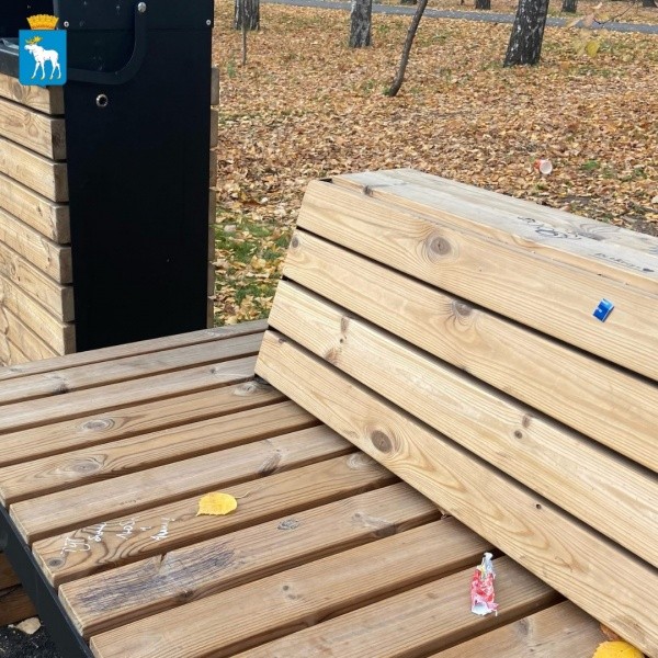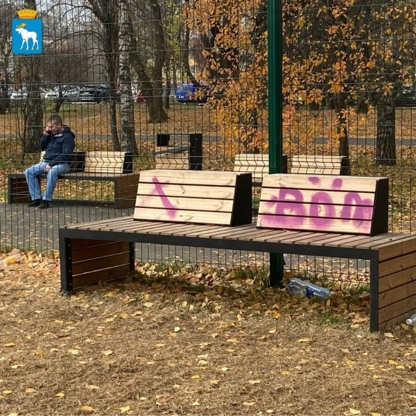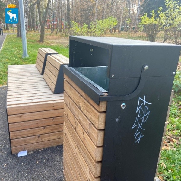 На обновленной по федеральному проекту «Формирование комфортной городской среды» территории изрисованы скамейки, урны и распределительные щиты, сломаны элементы малых архитектурных форм, повреждено ограждение футбольного поля. На спортивной площадке, да и в самом парке, появилось много мусора.