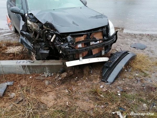 5 ноября около 12.00 на перекрестке улицы Крылова и автодороги Йошкар-Ола – Большая Ноля произошло столкновение автомашины Vortex сначала с препятствием, а затем с автомобилем Kia. По предварительным данным 46-летний водитель Vortex не уступил дорогу Kia под управлением 36-летнего водителя, который ехал по главной. Пытаясь уйти от столкновения, водитель Vortex врезался сначала в препятствие, а затем в ту же самую автомашину Kia. При ударе пострадала 36-летняя женщина, сидевшая в этом автомобиле.