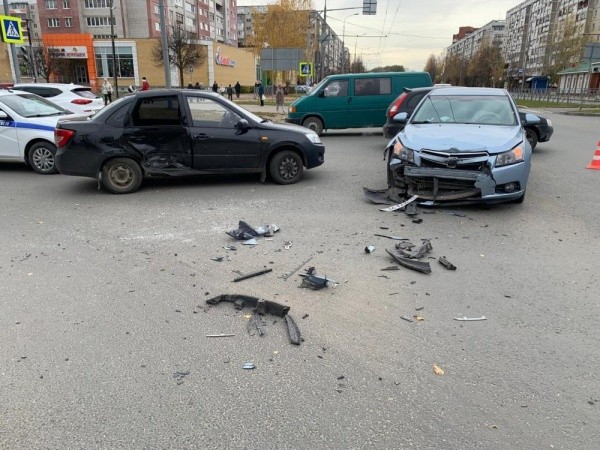 Предварительно известно, что 22-летняя девушка за рулем Chevrolet выехала на перекресток на запрещающий желтый сигнал светофора, где столкнулась с завершающим поворот налево автомобилем «Лада Гранта» под управлением 57-летнего мужчины.