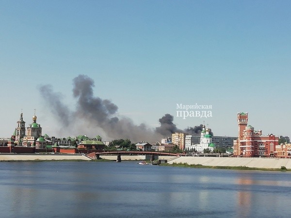 Прямо сейчас в центре Йошкар-Олы видны темные клубы дыма, которые идут со стороны улиц Советской и Комсомольской.