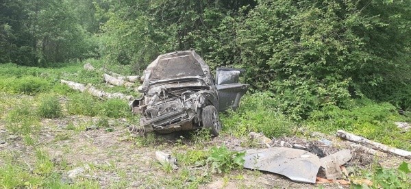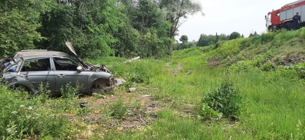 Иномарка съехала с дороги и опрокинулась в кювет.