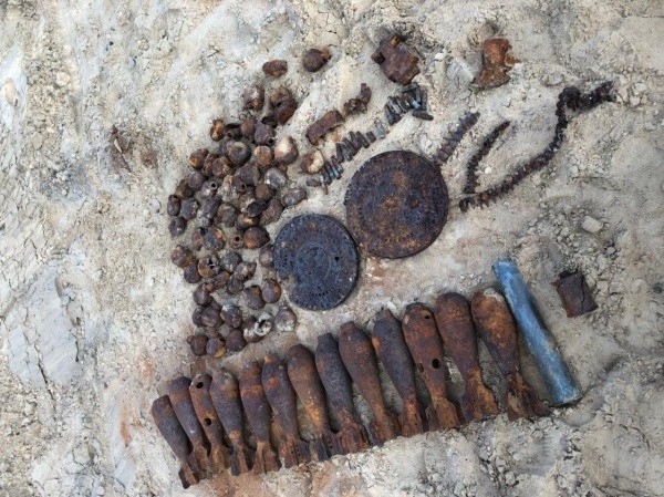 Росгвардейцы с помощью минно-розыскной собаки нашли 82-мм минометные мины в количестве 13 штук, 1 корпус ручной гранаты РГ- 42, 2 гильзы от снарядов к 45 мм противотанковой пушке, 2 дисковых магазина от ручного пулемёта Дегтярёва.