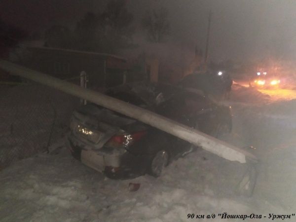 Около 23 часов вчера, 30 декабря, на 90-ом километре автодороги «Йошкар-Ола – Уржум», возле поселка Сернур, произошло ДТП, в котором погиб молодой человек. Предварительно известно, что 24-летний водитель автомобиля Hyundai не выбрал безопасную скорость движения, съехал с дороги и врезался в опору ЛЭП, рассказали в группе пропаганды безопасности дорожного движения Управления ГИБДД МВД по Марий Эл.