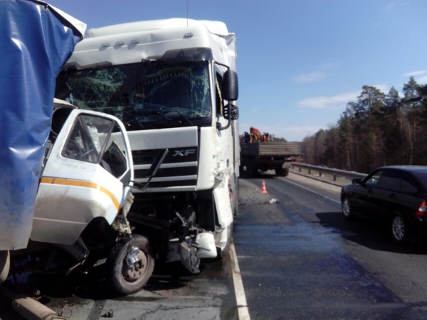 Марий Эл, 24 апреля. Сегодня днем на автодороге «Вятка» столкнулись два большегруза. Удар был такой силы, что водитель фургона погиб на месте еще до приезда скорой помощи.