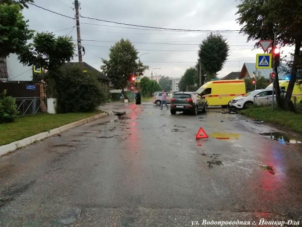 Авария случилась около 18.45 у дома №12 перекрестке улиц Водопроводной и Советской. По данным УГИБДД МВД по Марий Эл, 38-летний водитель Nissan, двигаясь на зеленый сигнал светофора не уступил преимущество карете скорой помощи, которая ехала прямо на запрещающий красный сигнал светофора с включенными специальными световыми и звуковыми сигналами.