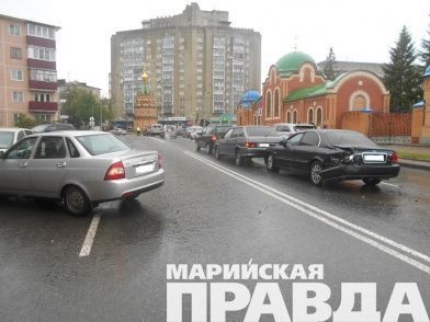 В Йошкар-Оле вчера на улице Успенской столкнулись пять машин после того, как водитель «Лады Приора» «вписался» в иномарку.