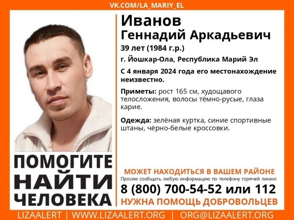 Поисковый отряд «Лиза Алерт» Республики Марий Эл просит помощи в поисках Геннадия Аркадьевича Иванова 1984 года рождения и Майорова Виктора Владимировича 1988 года рождения.